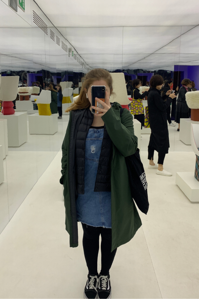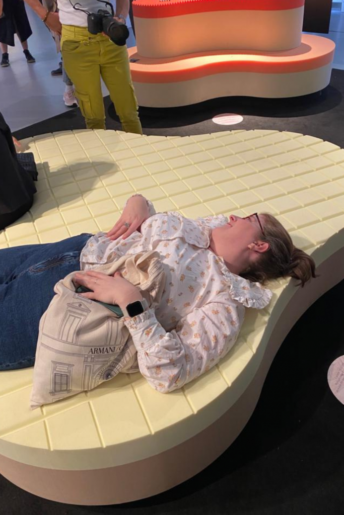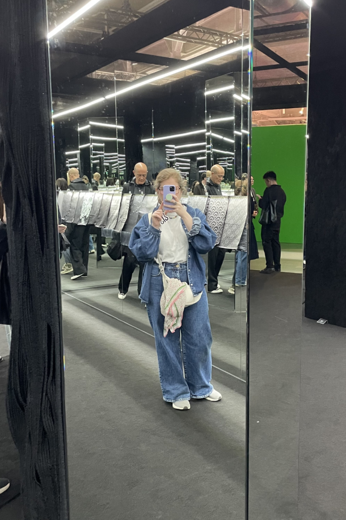 Se camina mucho. Zapatillas y ropa cómoda, sombrero, protector solar. Mejor vestirse con capas livianas, para ir sacandose los abrigos. Un cargador portátil, una botella de agua recargable y una tote bag para los folletos que vas juntando durante el día. Esos folletos terminan siendo un archivo de marcas y materiales que después sigo de cerca. A veces te dan tote bags, pero para qué seguir aceptando tote bags si ya tenemos miles?