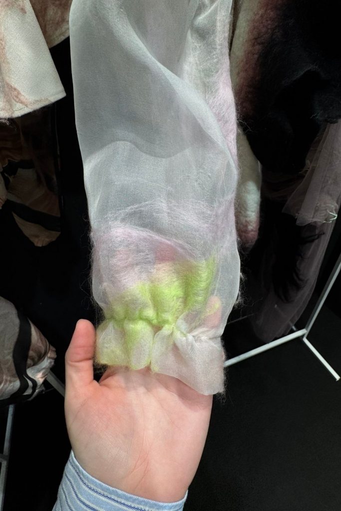 “Hola, soy Clara Pinto. Estamos ahora en White, Milano, mostrando mi última colección de primavera-verano 2026, que se llama Woman in Wool Bloom.