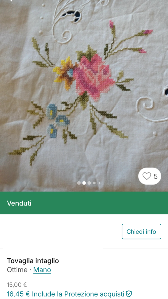 - Herramientas/Materiales para hobbies. Ahora se pueden vender lanas, agujas, pinturas,… manteles bordados a mano para usar o reciclar, como hace Caro en Aceituna y Paco.