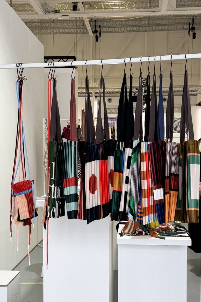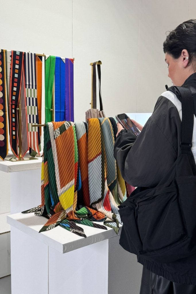 Shibori es la técnica que utilizan en Japón para crear estas carteras, bolsos y accesorios. Nos llamaron la atención las texturas, y pudimos probarnos algunas piezas, super livianas, flexibles. Me parecen perfectas para un viaje. Bunzaburo es la marca japonesa y se puede encontrar en Milán en el Spazio Liberty Showroom.