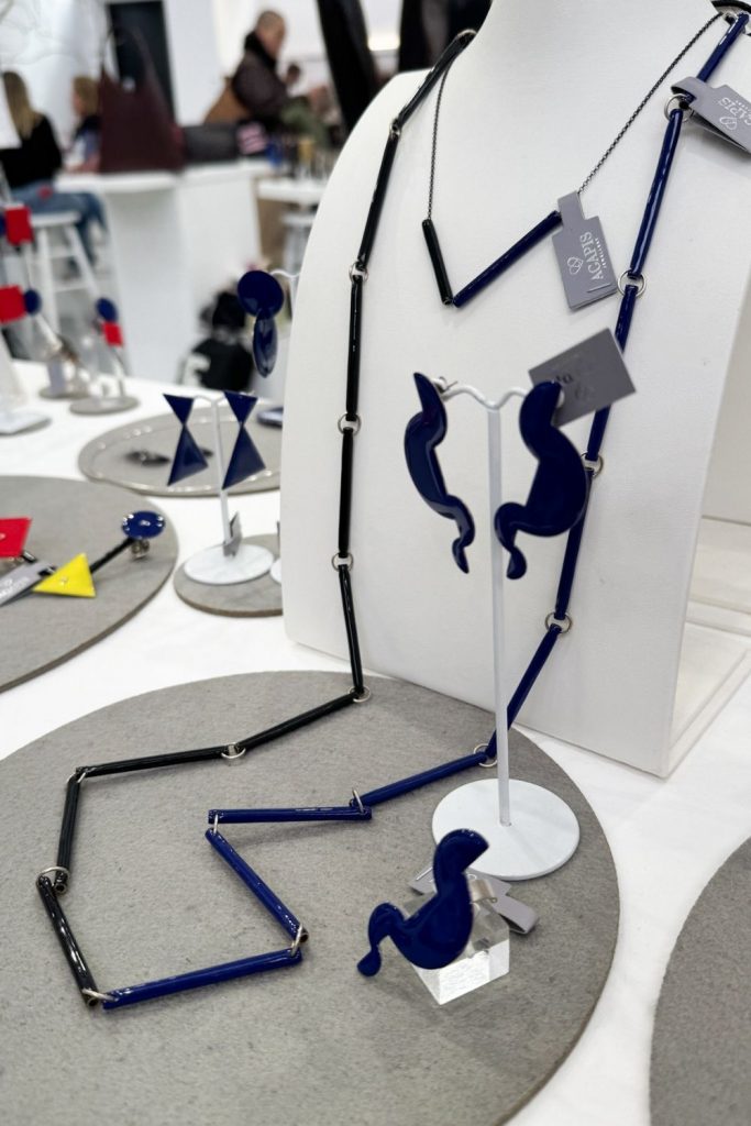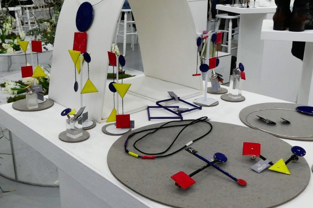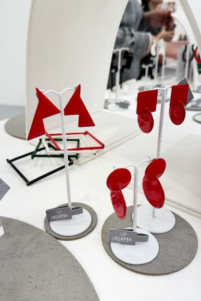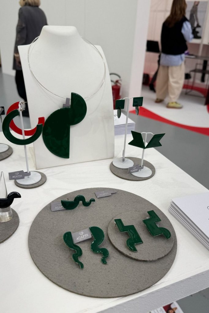 Agapis presentó una colección inspirada en la Bauhaus. Diseñadora griega.