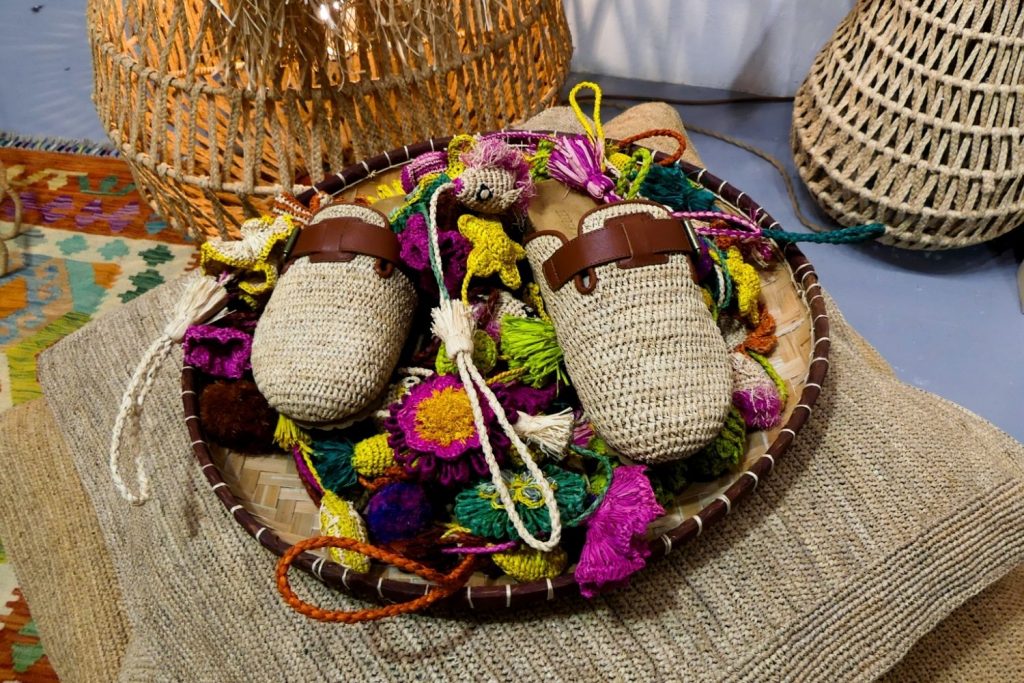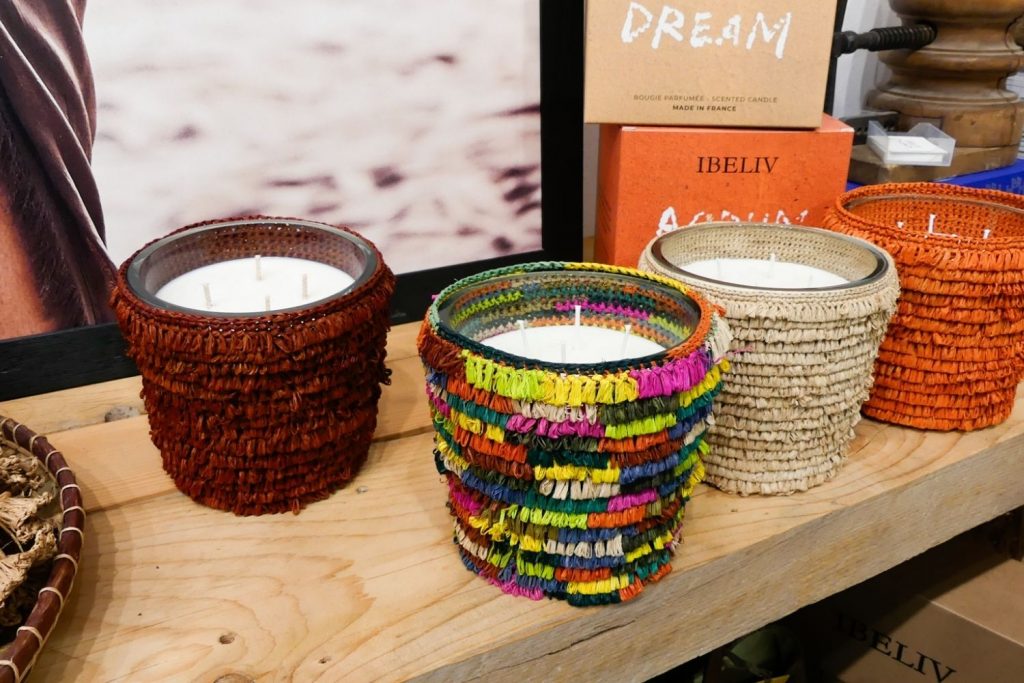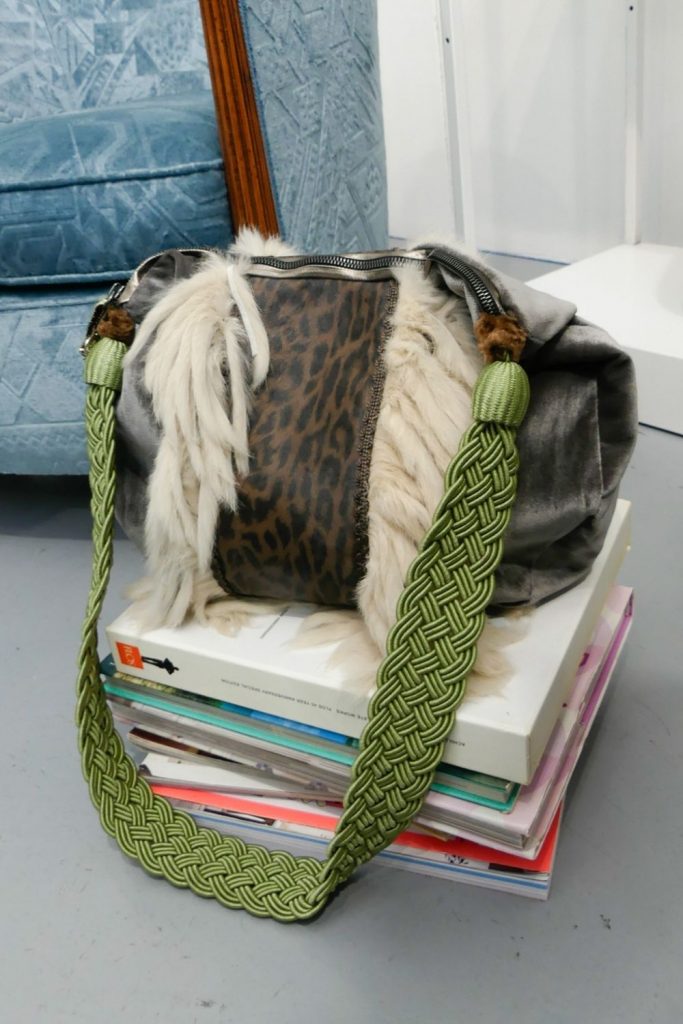 Muchos de las carteras son reversibles, están hechas de materiales que encuentran en depósitos y talleres. De los finales de los rollos de tela, por ejemplo, o de piezas muy pequeñas que las marcas no pueden seguir usando.